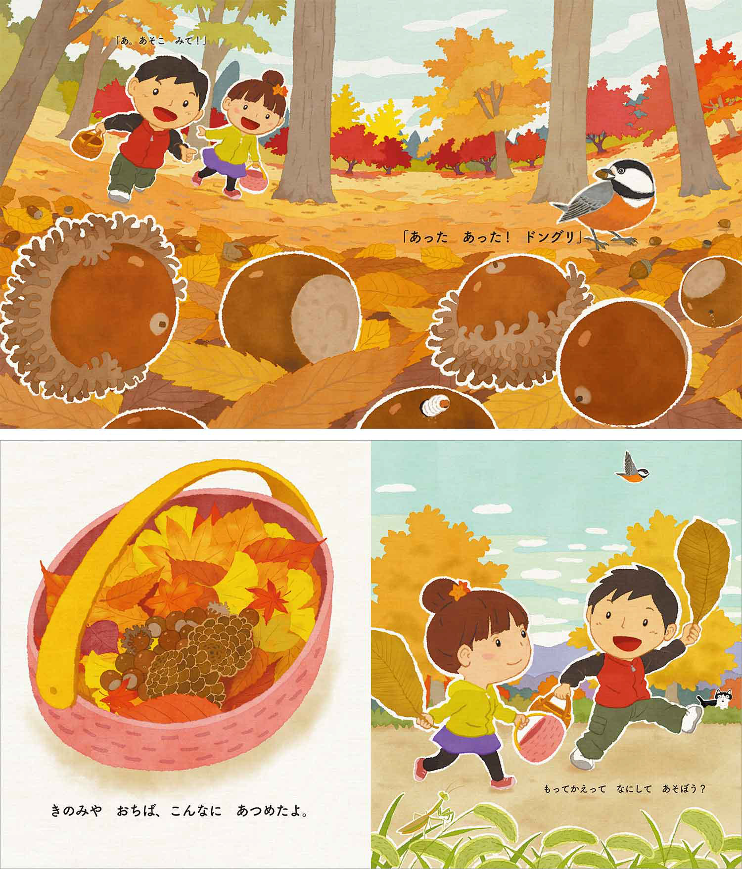 itoma舎さんの編著による絵本で、どんぐり・ひっつき虫・まつぼっくり・落ち葉などを使った遊びがいっぱい出てきます。