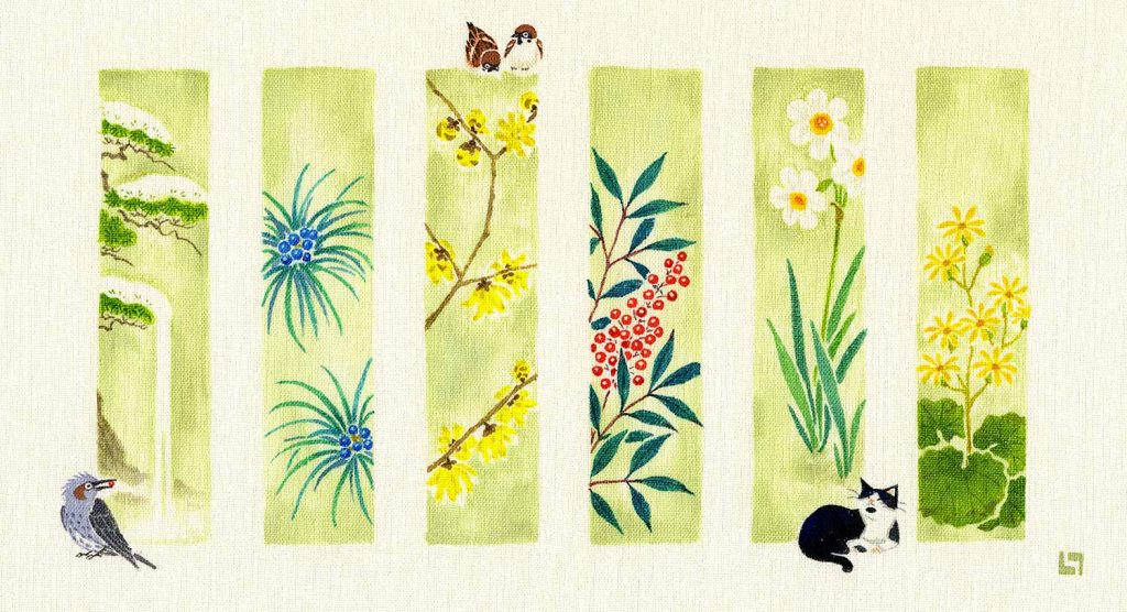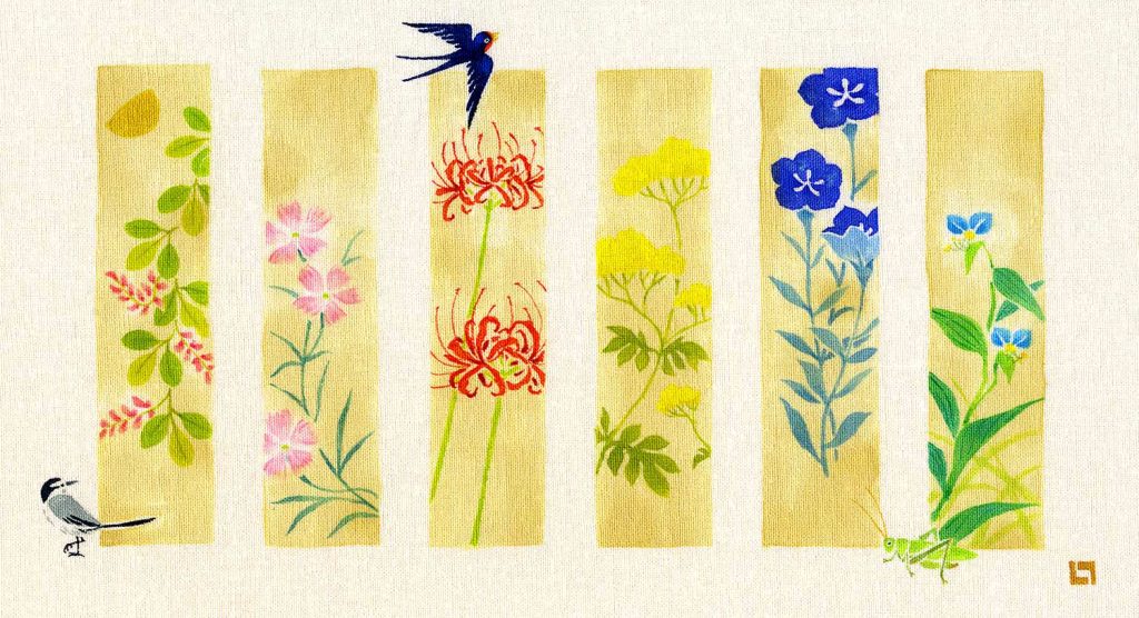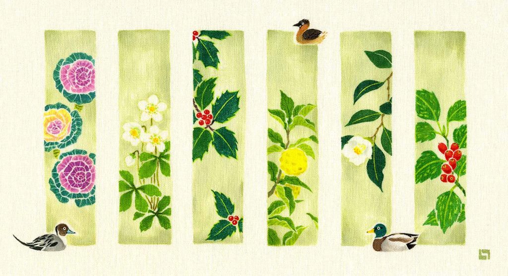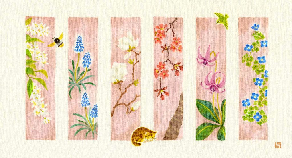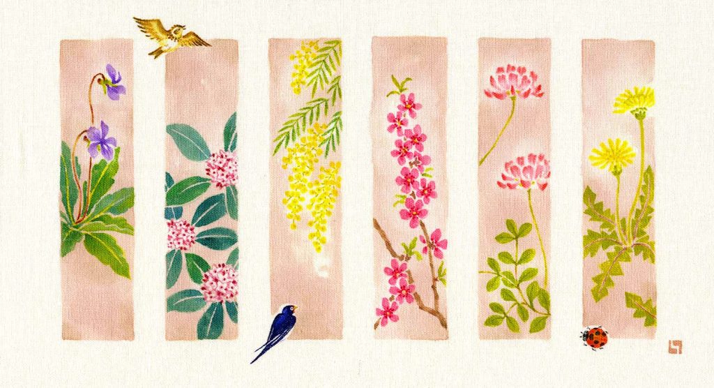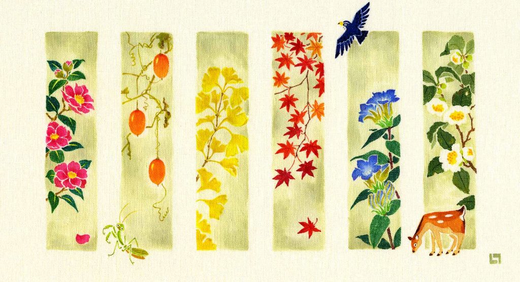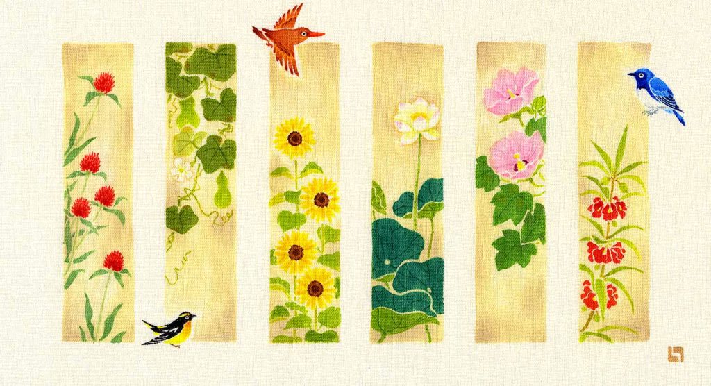 季節の花々を、各6種づつ短冊状に描いた作品です|大阪・GALERIE CENTENNIAL