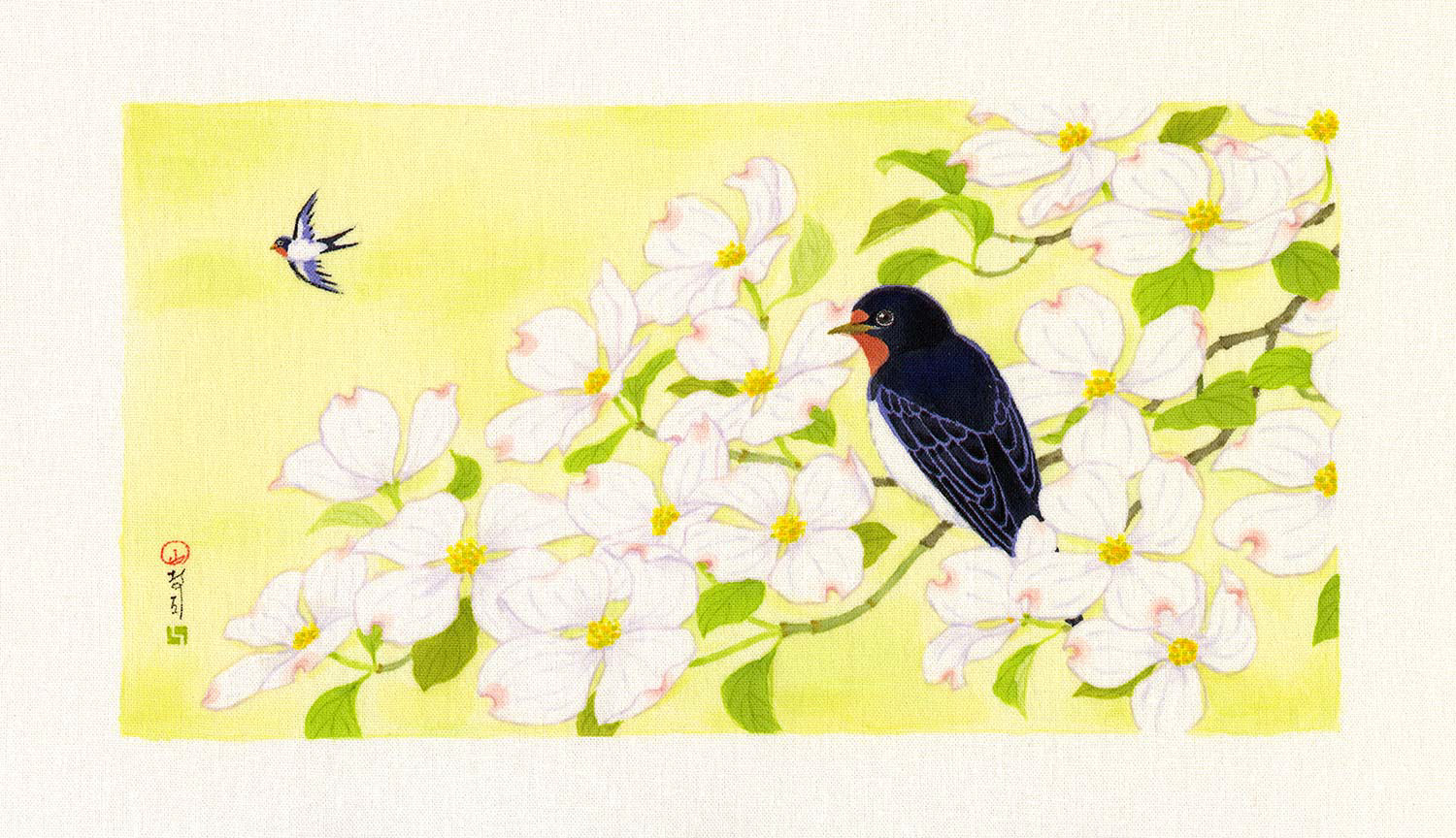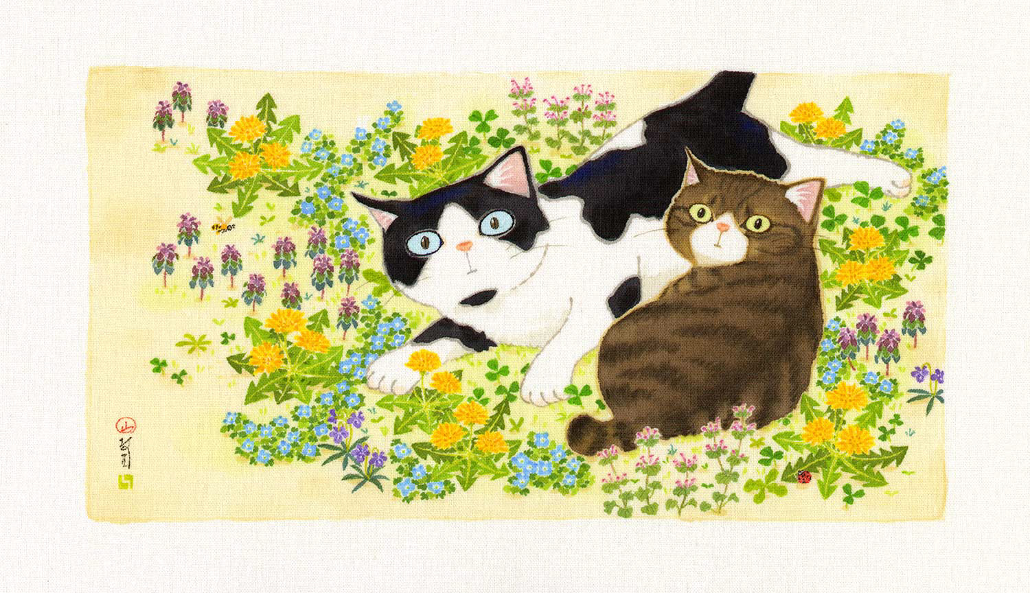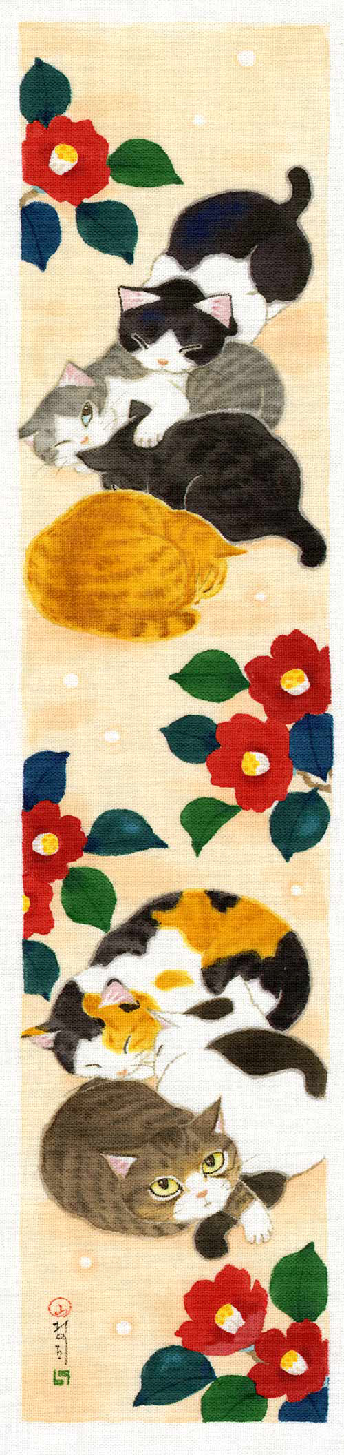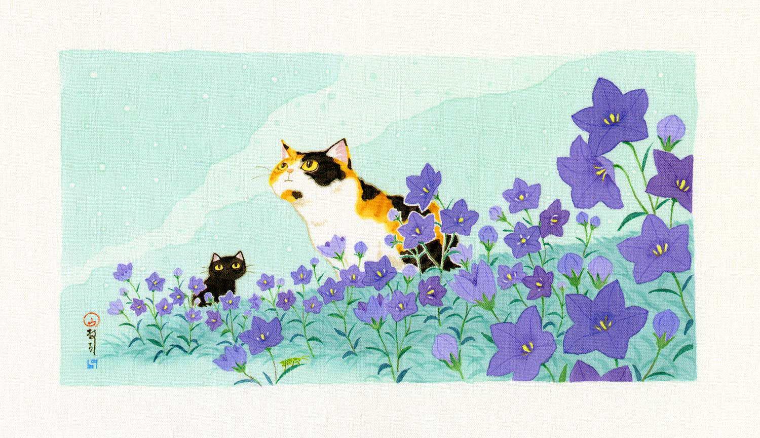 季語をテーマにした草花と猫や鳥などの作品です。|大阪・Gallery 14thmoon