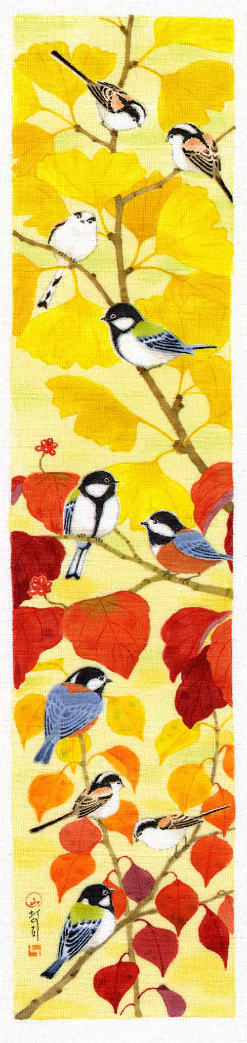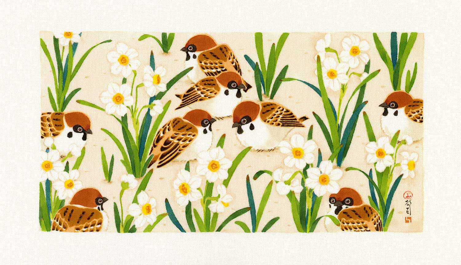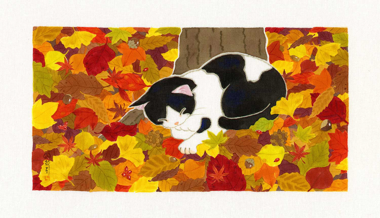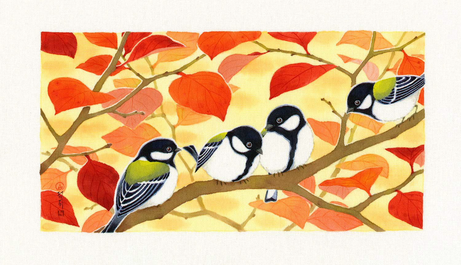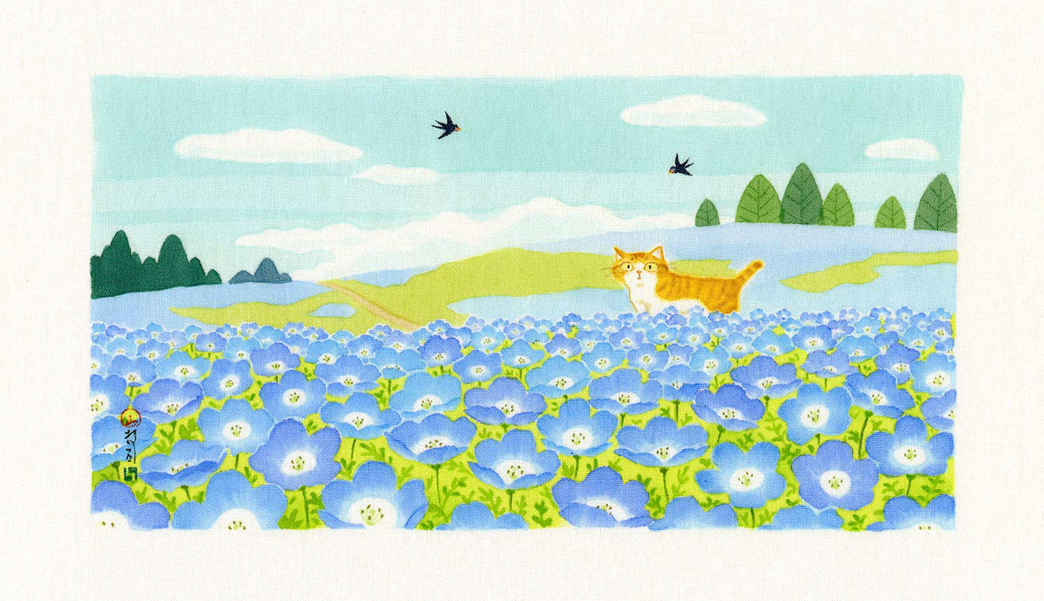 季語をテーマにした草花と猫や鳥などの作品です。|大阪・Gallery 14thmoon