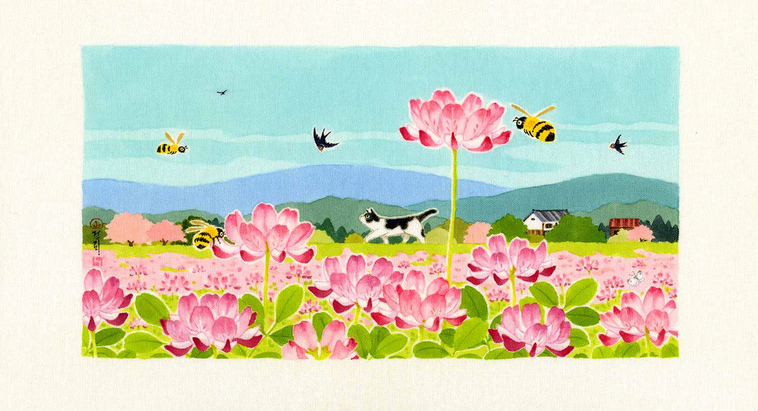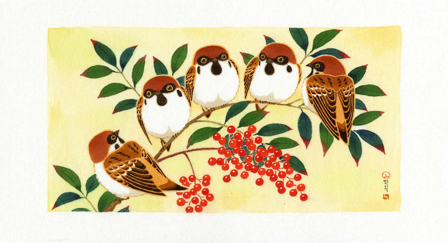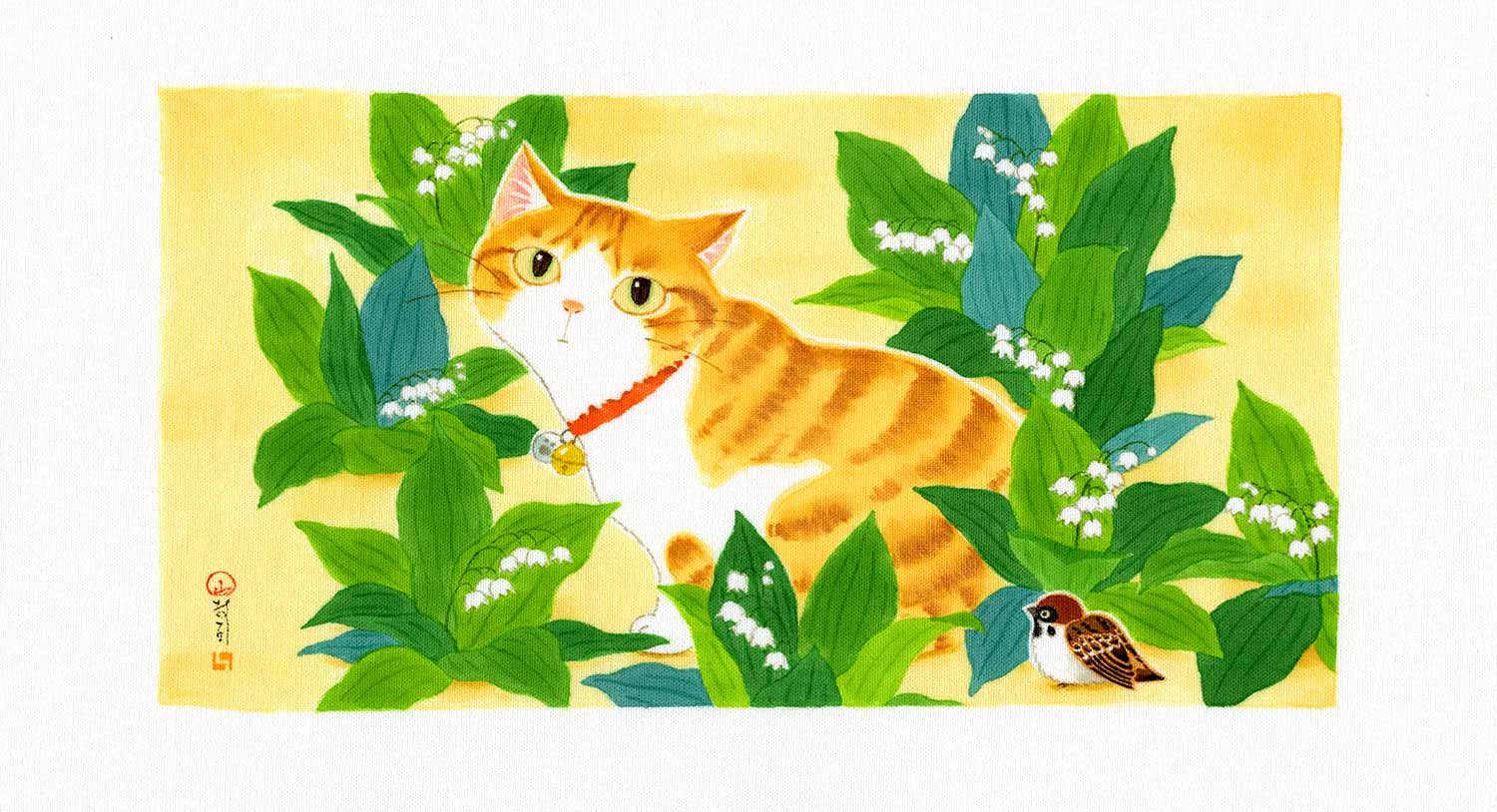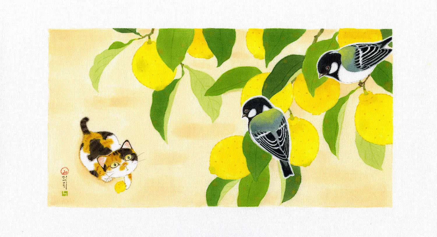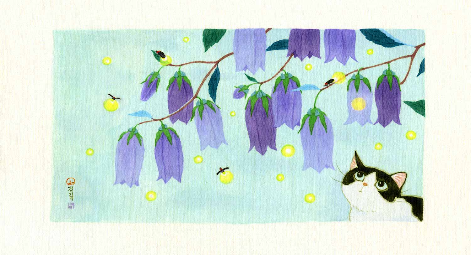 四季折々の花鳥や猫の作品を描いています。
