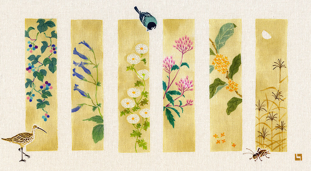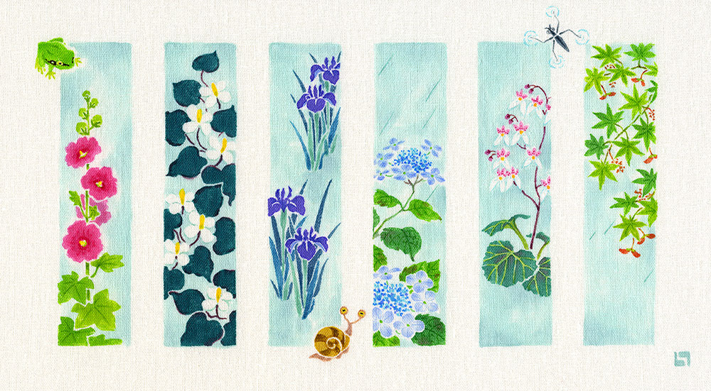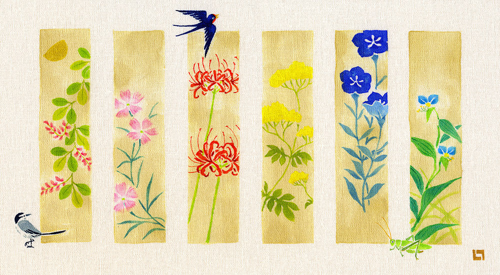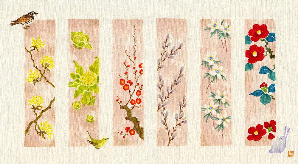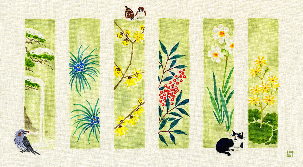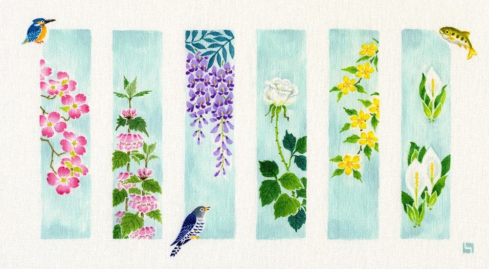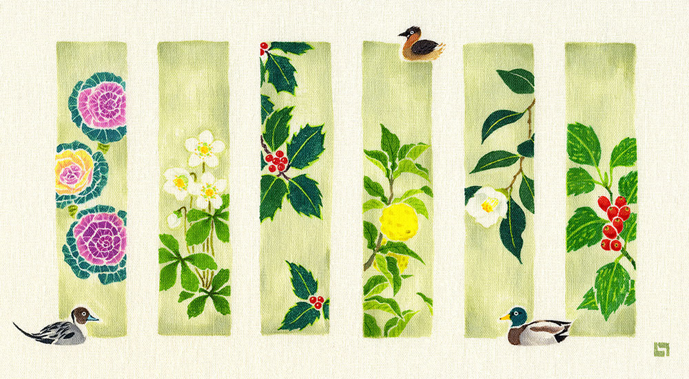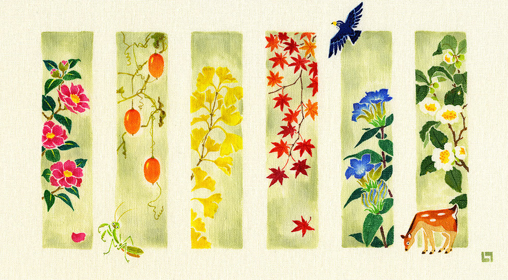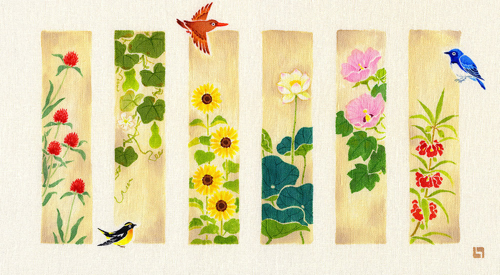 季節の花々を、各6種づつ短冊状に描いた作品です|大阪・GALERIE CENTENNIAL