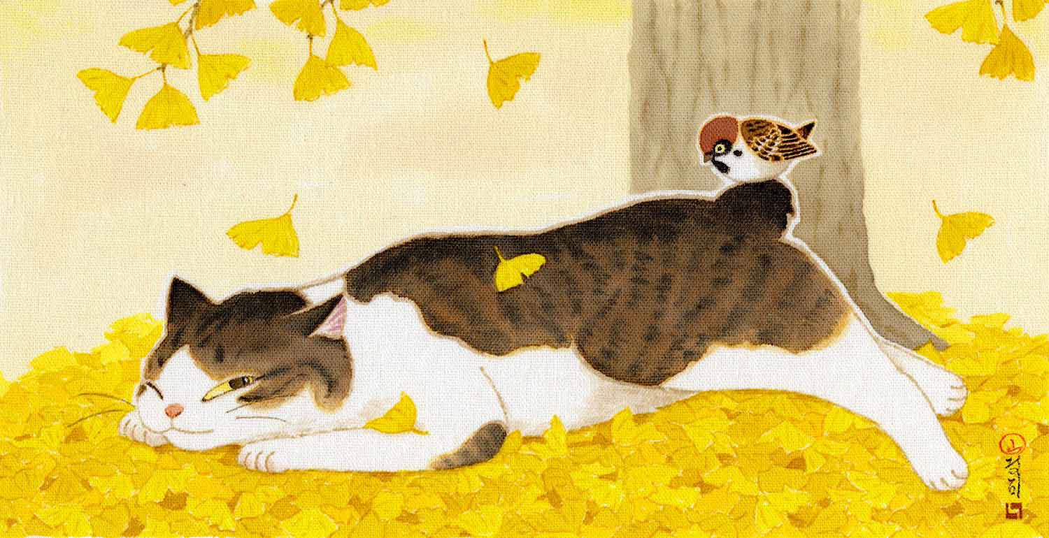 今年は「ねことすずめ」をモチーフにした歳時記の作品を展示します。